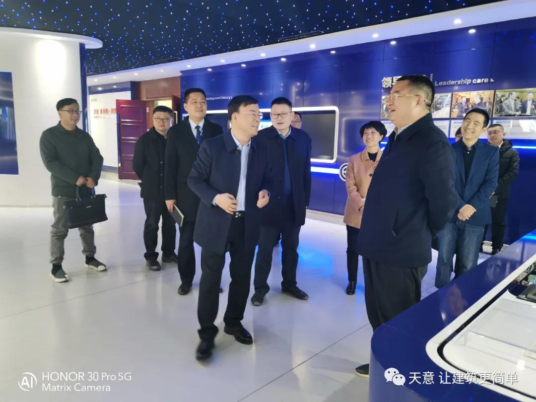 2021年2月23日, 市住建局黨組成員、副局長趙羽,市住建局節(jié)能與科技科科長孫新魯?shù)阮I(lǐng)導(dǎo)一行,在區(qū)住建局局長鄒紅, 區(qū)住建局行業(yè)發(fā)展科科長馬特等領(lǐng)導(dǎo)的陪同下,蒞臨天意座談并考察指導(dǎo)工作。天意機(jī)械董事長劉洪彬,總經(jīng)理劉海龍,國內(nèi)銷售部經(jīng)理秦艷慧等領(lǐng)導(dǎo)參加了座談?wù){(diào)研,并陪同參觀了天意省級研發(fā)中心、科技體驗館、BIM技術(shù)在裝配式建筑中的創(chuàng)新應(yīng)用情況等。