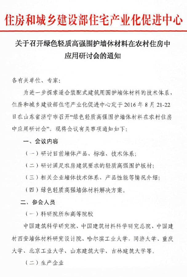 行業(yè)要聞:綠色輕質(zhì)高強圍護墻體材料在農(nóng)村住房中應(yīng)用研討會通知
