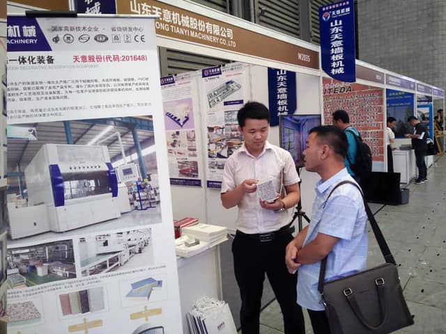 本次展覽會現(xiàn)場人頭攢動,氣氛十分熱烈,天意機(jī)械展位也是人氣火爆,前來咨詢鋼結(jié)構(gòu)集成房屋、外墻保溫裝飾一體化板生產(chǎn)線,輕質(zhì)墻板生產(chǎn)線、復(fù)合墻板生產(chǎn)線等產(chǎn)品的客戶絡(luò)繹不絕。銷售部李經(jīng)理,熱情的向來訪的每位客戶,介紹了天意綠色建材裝備在鋼結(jié)構(gòu)建筑、裝配式建產(chǎn)業(yè)化中的應(yīng)用優(yōu)勢。