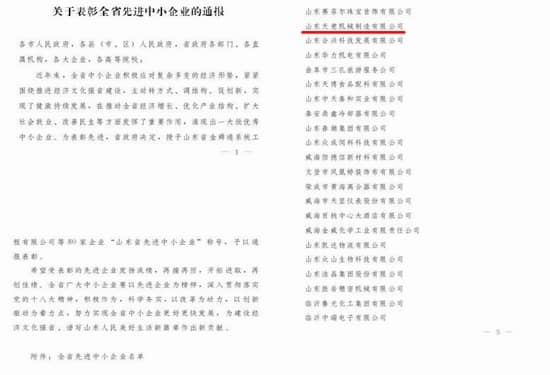 山東天意機械被評為全省先進中小企業(yè)表彰鏈接http://www.smesd.gov.cn/view/zhongyaotongzhi/315751.html
