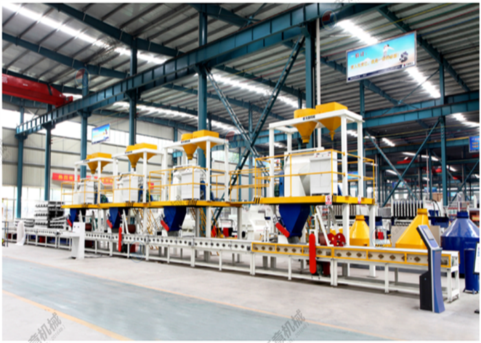 該生產(chǎn)線可生產(chǎn)各種產(chǎn)品,如FSB建筑保溫免拆模板、EPC建筑保溫免拆模板、夾心保溫墻板等,生產(chǎn)線自動化程度高,采用PLC控制系統(tǒng)保證了生產(chǎn)線的穩(wěn)定性,節(jié)省人工,生產(chǎn)效率高,設(shè)備配有計量系統(tǒng),結(jié)合產(chǎn)品的材料性能使料漿攪拌均勻,能夠很好的將產(chǎn)品復(fù)合在一起,從而提高了產(chǎn)品的質(zhì)量。