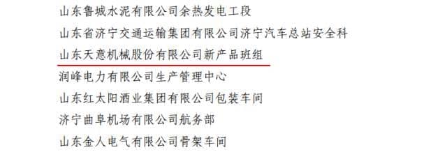 重磅消息:天意機(jī)械新產(chǎn)品班組榮獲“山東省青年安全生產(chǎn)示范崗”榮譽(yù)稱(chēng)號(hào)
